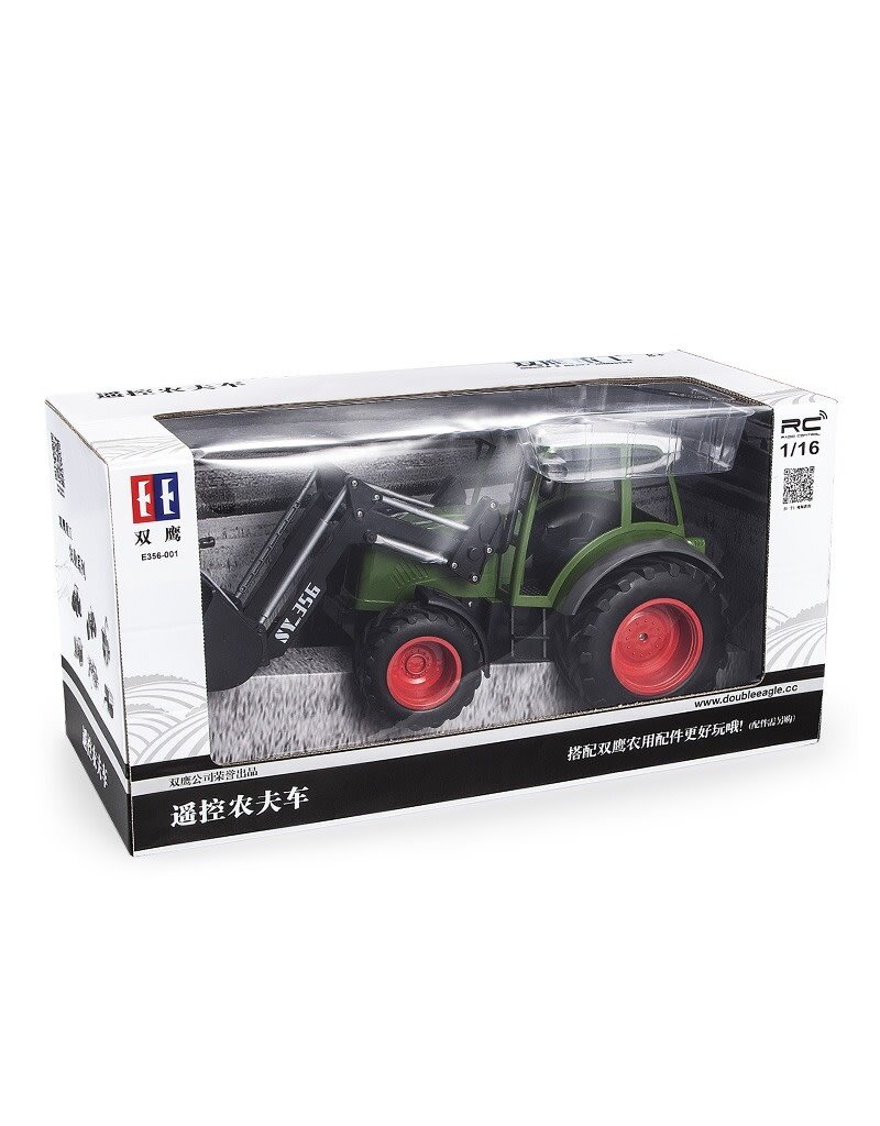 The Double E Front Loader Tractor (E356) is a versatile RC model that can be used both on the farm and in construction site. The back hook allows for additional agricultural machines or trailers to attach, while remote control front loader feature makes lifting materials easy! With working lights & sounds added this toy tractor provides hours of fun with guaranteed enjoyment.
