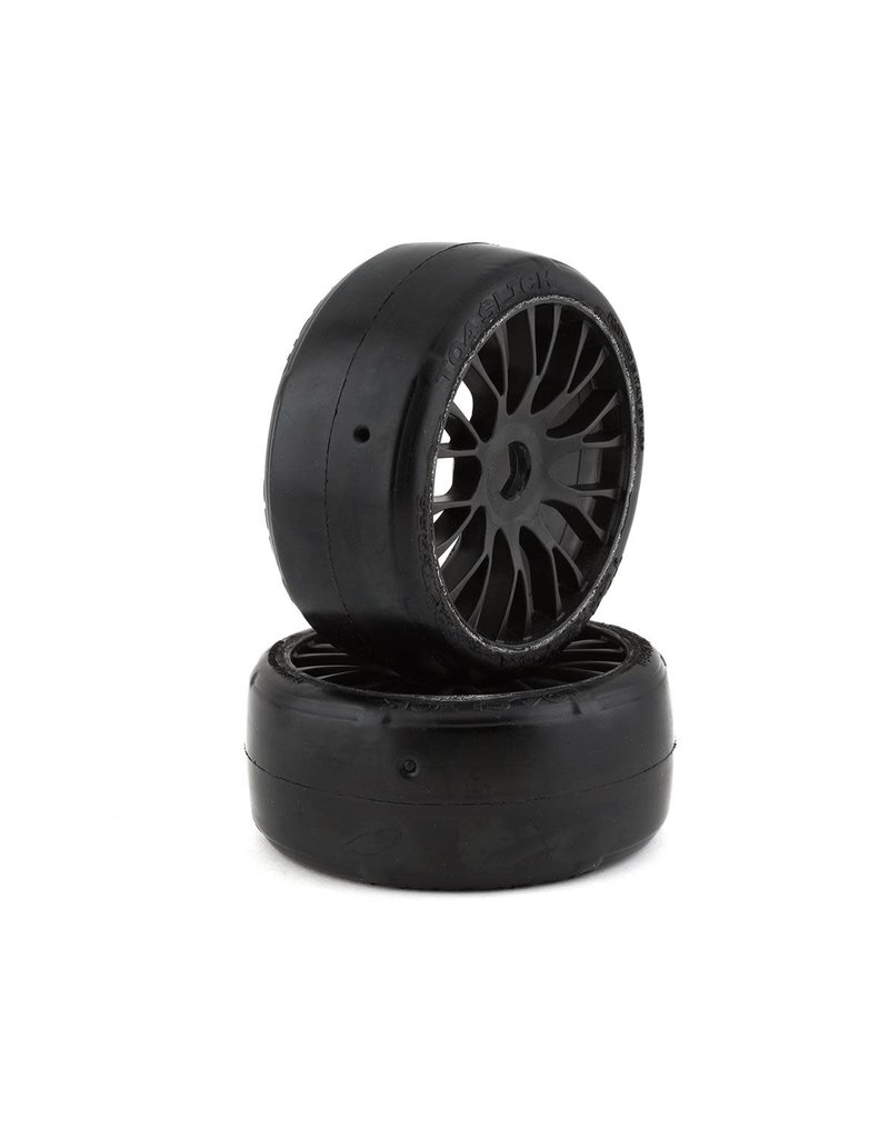 GRP GT - TO4 Slick Belted Pre-Mounted 1/8 Buggy Tires. These tires are mounted on black GRP 20 spoke FLEX wheels.