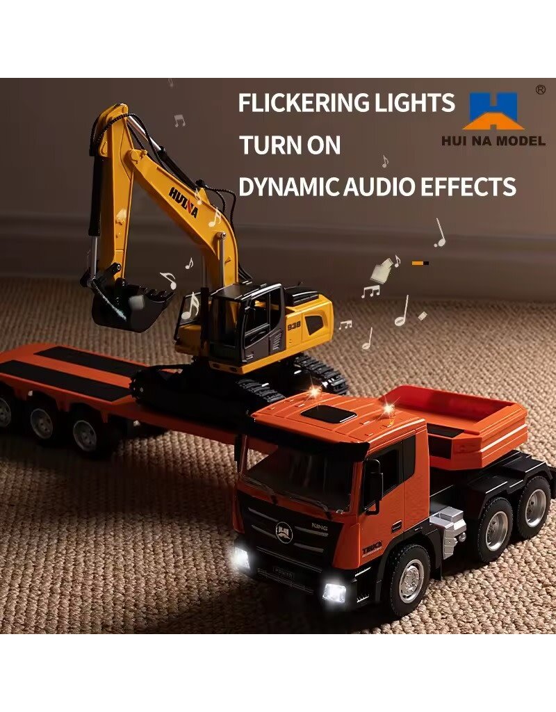 1:18 Scale & Realistic Design: Experience the thrill of real-world operations with the 1:18 scale HUINA RC tractor truck and excavator, featuring detailed plastic construction for authentic play.