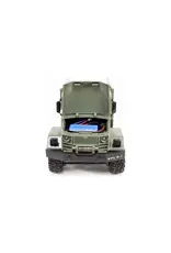 The M35 is a 1/16th scale 2.4GHz RTR (Ready to Run) 6x6 R/C truck. This truck is equipped with a frequency hopping 2.4GHz system which allows multiple people to play at once. It also comes with a steering servo with proportional steering, LED headlights, 6 wheel drive, and proportional throttle with great low speed control.
