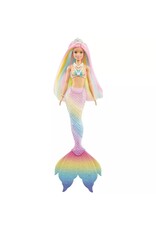 This Barbie Dreamtopia Rainbow Magic Mermaid doll features a color-change transformation that lets imaginations dive into their most colorful fairytales yet! Barbie mermaid doll features a neon-bright fantasy look with a tiara in her rainbow hair, a vibrant multi-colored tail and a bodice with sea-inspired accents. Ready for a color transformation? Dip Barbie doll in warm water and watch her hair, bodice and tail instantly change color to reveal a rainbow of pretty pastels! Dip her in ice-cold water to see her change back to her original neon-bright look and relive the transformation again and again. Doll cannot swim or stand alone. Colors and decorations may vary.