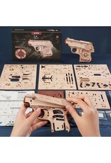 It's another rousing ROKR adventure with the Justice Guard, a handy mini-gun you can build and play with. Designed to be discreet yet accurate, this semi-automatic pistol serves up action-packed quests with its precise aim and safe rubber band bullets. Building the Justice Guard Mini Gun is a unique, hands-on experience that strikes the perfect balance between challenge and enjoyment, featuring functional mechanical movement and an impressively authentic, detailed look. This toy is not just something to be enjoyed but an educational piece to be relished. Made of POM (a high-performance plastic with low friction properties), the detachable ammo cartridge and movable trigger provide a smooth-sliding effect and audible click that simulates a real handgun. You'll almost forget that it's a 3D wooden puzzle!