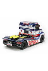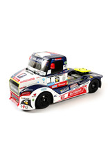 The Tamiya Buggyra Fat Fox 1/14 4WD On-Road Semi Truck is a scale recreation of the full size Buggyra Racing Fat Fox truck piloted in the 2018 season of the European truck racing circuit by 2017 champion Adam Lacko. The realistic 3-piece body is made from lightweight and durable polycarbonate, with separately molded plastic side mirrors, coupler and rear bumper parts. The TT-01 Type-E chassis is a proven performer, and this chassis is fitted with dedicated semi-truck wheels and tires for the model.