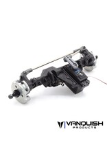 VFD Stubby conversion Kit for the VRD Chassis. Requires the use of a motor 35mm in length or less (typically outrunners). Shortens the length of the VFD transmission with a new topshaft and machined aluminum posts. Includes updated chassis bracing, behind the axle servo relocation mount and shortened VRD skid plate extension for the F10 axle. A lightweight outrunner motor and lowered servo position significantly lowers the center of gravity, increasing the performance of the VRD Carbon.